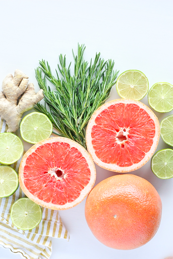 grapefruit spritzer with rosemary-ginger syrup