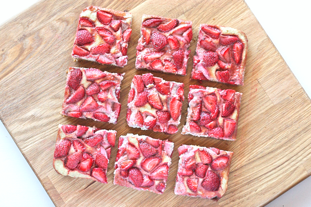 vegan & gluten-free strawberry cheesecake bars