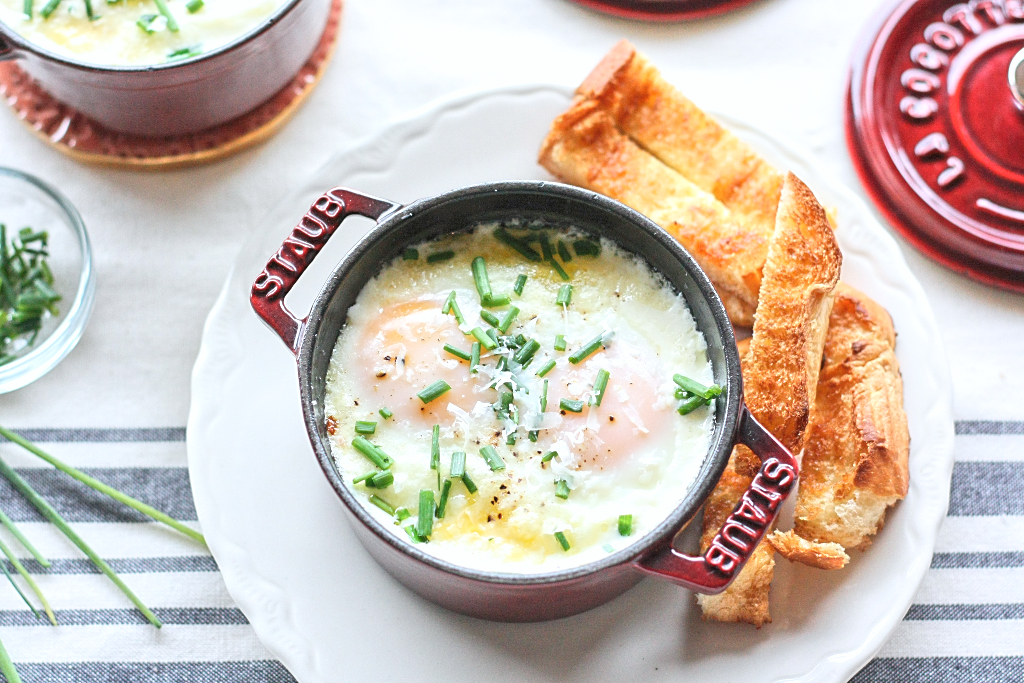 shallot and mushroom eggs en cocotte