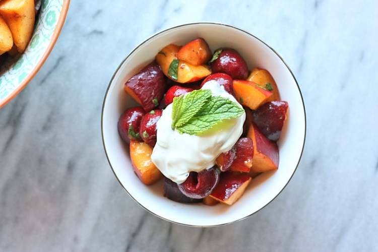 STONE FRUIT SALAD WITH CARDAMOM AND CRÈME FRAÎCHE