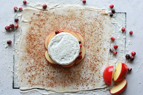 baked brie with apples, cranberries, and spiced pecans