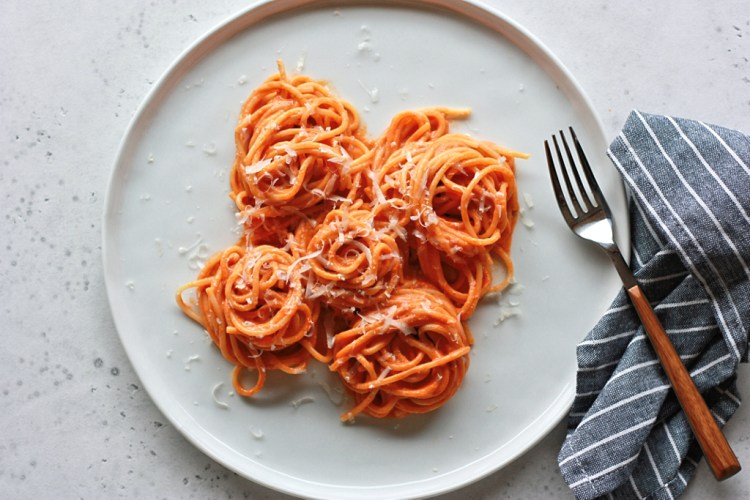 I’ve never been a huge fan of spaghetti sauce (please don’t disown me), but this a red sauce I can definitely get behind. It’s super flavorful, not the least bit boring, and with a touch of spice. There’s also a bit of cream, just in case you feared I was going to go all “health-nut” on you and say the sauce’s base was made from overnight soaked cashews. This recipe has been through a few rounds of taste-testing and I have yet to grow tired of it, in fact, I might make it again this week. So skip your 10pm dinner reservation on one of the busiest restaurant holidays of the year, and eat a plate of delicious pasta at home that would have cost you $24 at said restaurant.