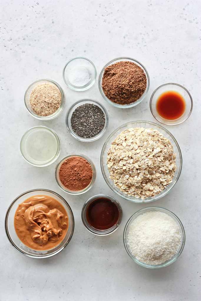 Mix all ingredients together in a medium-large bowl. Refrigerate the batter for 15 min, then form into roughly 1 oz/1.5 inch balls. Store in an airtight container in refrigerator.