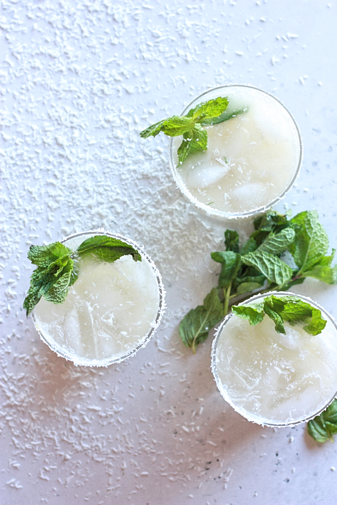 We’ve reached that point in the summer when I brazenly curse the hot days and 90 degree afternoons in our kitchen (yes, 90 degrees, inside), but at the same time I’m celebrating our need for popsicles and cooling afternoon cocktails. About this time last year we were saying “cheers” with The Adeline champagne cocktail (in celebration of our daughter’s birth), so I thought it appropriate to honor that memory and supply you with another recipe for your arsenal of summer cocktails. This drink is a smashing together of a less sweet piña colada and a light-on-the-mint mojito. So take an afternoon off and beat the heat with these delicious pineapple coconut mojitos that will make you want to drink rum like a sailor at sea.