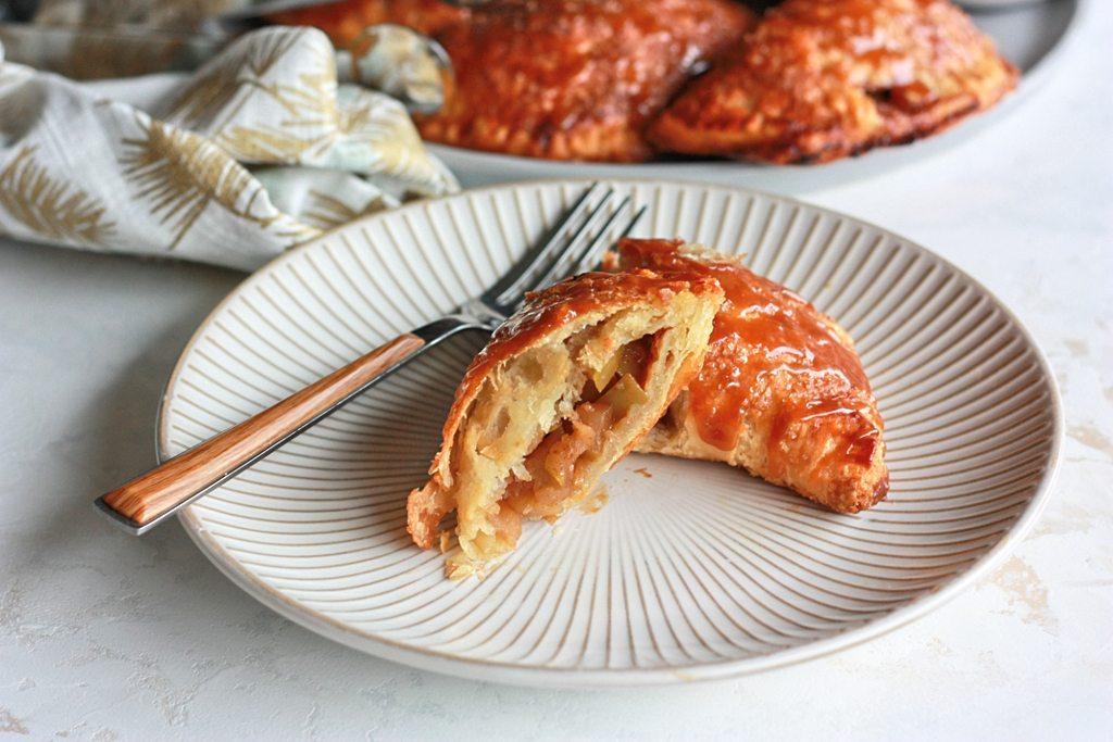Remember last year when I confessed that I don’t really like pumpkin pie? Well, in keeping with tradition of sharing embarrassing pie facts about myself, I’ll confess that I also don’t really like apple pie. Unlike my daughter, I could go without mountains of sugary apples (she devours sautéed apples with cinnamon). I’m mostly in the “pie game” for the buttery crust. Which makes hand pies the perfect solution, since, in my opinion, they have an acceptable ratio of pie dough to apple filling. Add some salted caramel, and I’m hooked. I can honestly say that I love these apple hand pies; the flaky, buttery crust is my best version yet! If you are looking for a fun new thanksgiving (or any time year) dessert, then I recommend you give these a try.