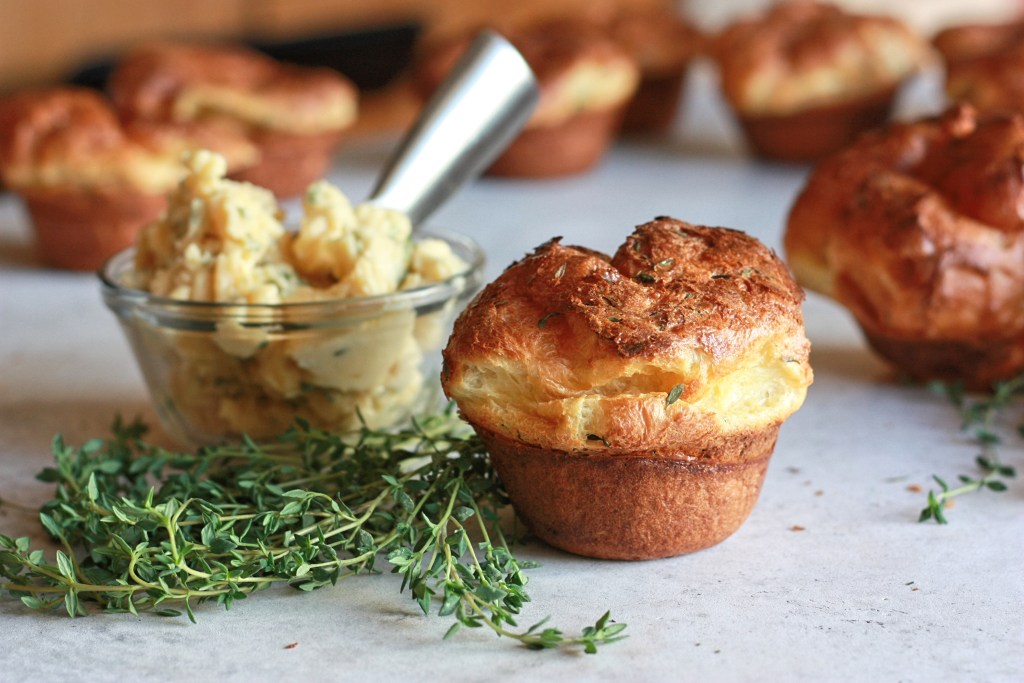 BROWNED BUTTER AND THYME POPOVERS WITH WHIPPED HONEY BUTTER