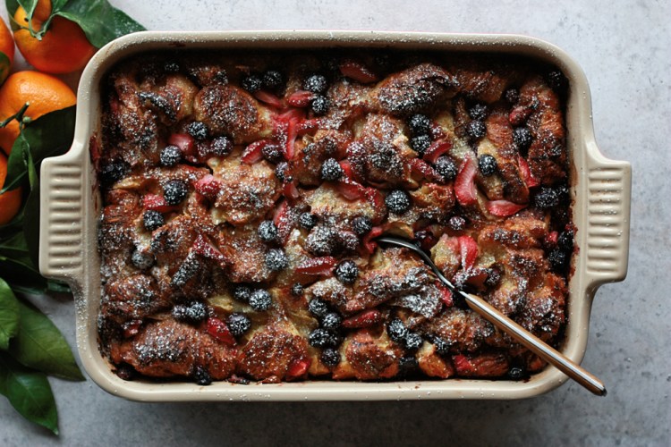 This is truly the easiest breakfast to throw together the night before. Simply tear up the croissants right into your baking dish, mix them with milk and eggs, and let it sit overnight in the refrigerator. Forty-five minutes before you want to eat, pop the dish in the oven. This will be my new go-to […]